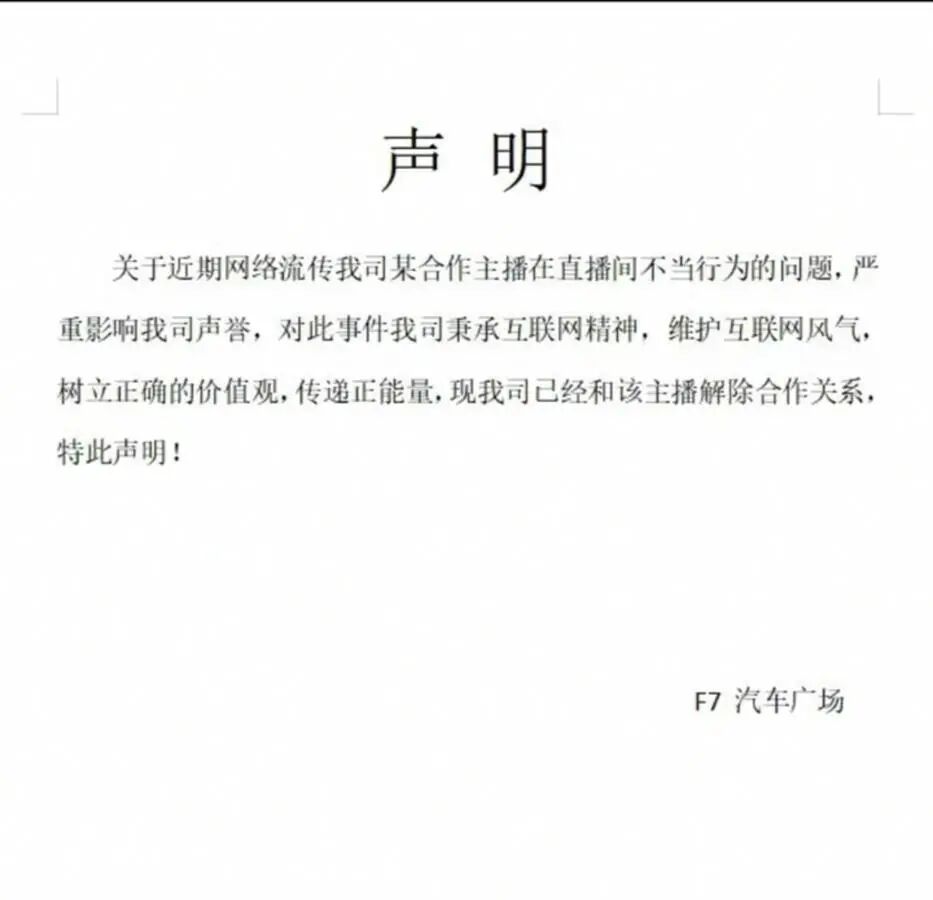 [backcolor=transparent]视频剪辑 轩逸瑶2月17日下午,该主播所属公司的账号发布视频声明称,已与公司某女主播解除合作关系。 女主播据媒体报道,2月16日,有网友反映一汽车女主播在车内直播时疑涉黄,她多次发出“不可描述”叫声,随后网友组队评论称“车友群中都是你”“你火了”。该账号已被平台封禁,主页认证信息显示为浙江台州德业汽车有限公司。 女主播账号已被封禁2月17日下午,记者注意到,在平台出现了十分相似的账号,发布了几段直播录屏视频。账号简介中称:“大号被封,以后用这个号开播。”不过,到了下午5时左右,该账号因涉嫌*****低俗,被平台封禁处理。网传的该女主播直播录屏视频中,她确多次在讲话时发出类似喘息的声音,还曾说过不能影响旁边的小朋友。她在直播中说,她所在的门店是位于台州迎宾大道的F7汽车广场。2月17日下午3时许,名为“F7汽车广场直播”的账号发布一则视频声明称,近期网络流传的该公司某女主播在直播间有不当行为,严重影响了公司声誉,针对此事,公司已与该主播解除合作关系。 所属公司声明截图对此,记者私信该账号试图确认该女主播是否为上述发出叫声之人,但暂未获得回应。该账号主页显示线下门店为台州德业汽车有限公司,记者根据联系方式联系上一名工作人员,其表示自己是F7汽车广场的员工,该账号也属于F7汽车广场,但不清楚这则声明的内容。对此,记者咨询了辖区路桥公安分局路南派出所。民警介绍称,如果女主播只是发出叫声,没有其他举动,不算涉黄。目前派出所未接到相关举报,如果网友觉得类似行为不妥,可以向平台反映。来源:极目新闻(ID:ctdsb*****x[font=mp-quote, -apple-system-font, blinkmacsystemfont, "])