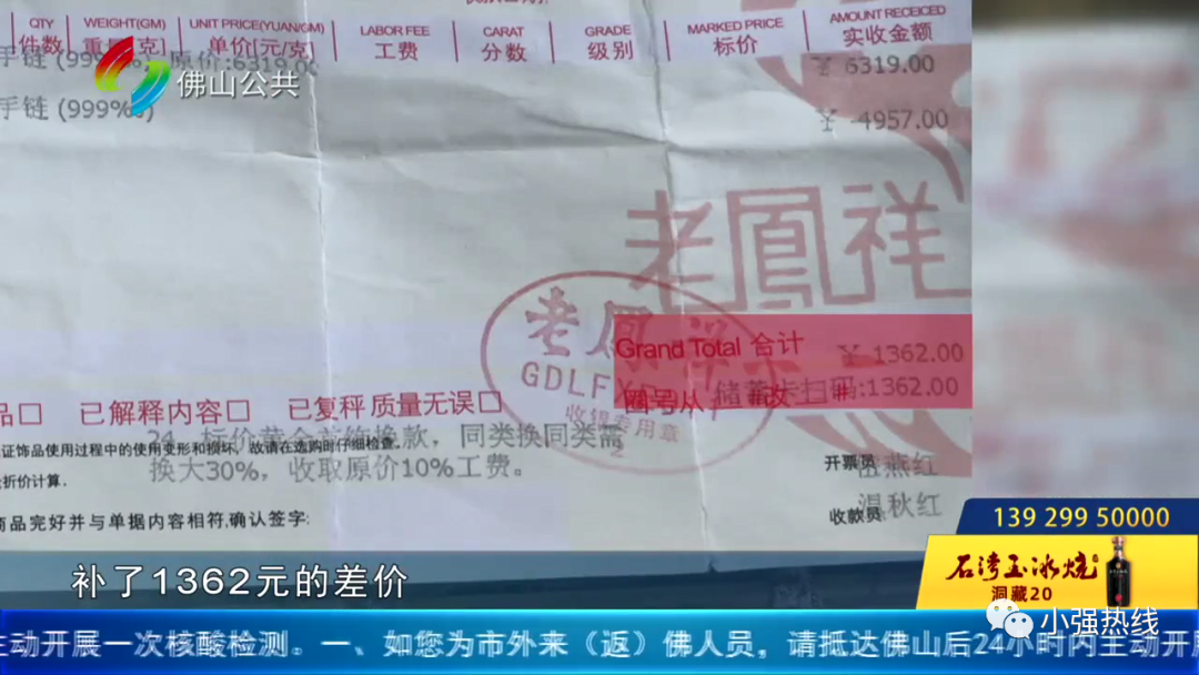 于是,育女士来到门店提出更换手链,当时她选了一条价格更高的新手链,补了1362元的差价。