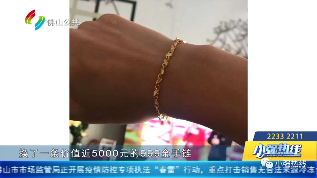 以旧换新,换了一条价值近5000元,款式较为新颖的的999金手链,