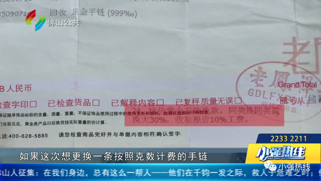根据他们的质保规定,育女士购买的手链是“一口价产品”,如果这次想更换一条按照克数计费的手链,必须选择高于原款30%价格的手链,补上差价。