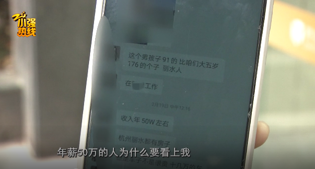 储女士他给我介绍了一个年薪50万的人,我年薪也就是15万,年薪50万的人为什么要看上我,我就觉得差距太大了。如果她每次介绍我都没看上,那两个月很快就过去了,这样不是浪费我的钱和时间嘛。