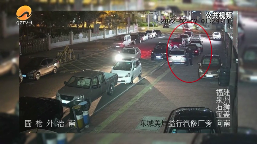 石狮宝盖派出所民警 黄艺琳我们通过调取监控,发现嫌疑人。从摄像头里看他是喝醉酒了,走路也比较颠簸,他自己也摔倒了,摔倒之后就开始砸路边的车。我们数了一下,总共砸了6辆车。