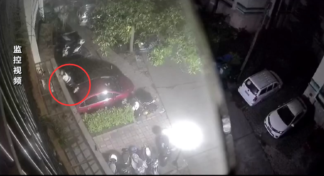 卢女士和丈夫两人住在玫瑰园小区10栋的二楼,一楼是车库,18日晚正好有一辆红色汽车停在车库门前。