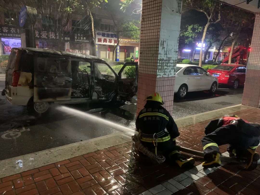 救援力量到达现场看到,一辆停靠在辅路的新能源面包车此时处于猛烈燃烧阶段,现场火光四溢,浓烟滚滚。此外,起火位置临近街边商铺,周围还停靠着其它车辆,若不及时处理,势必会造成更严重的后果。