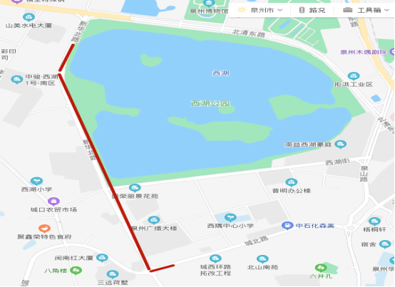 (二)西湖公园-开元盛世广场西湖生态度假村停车地点