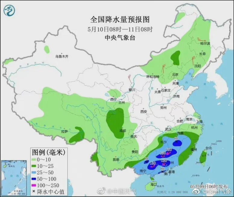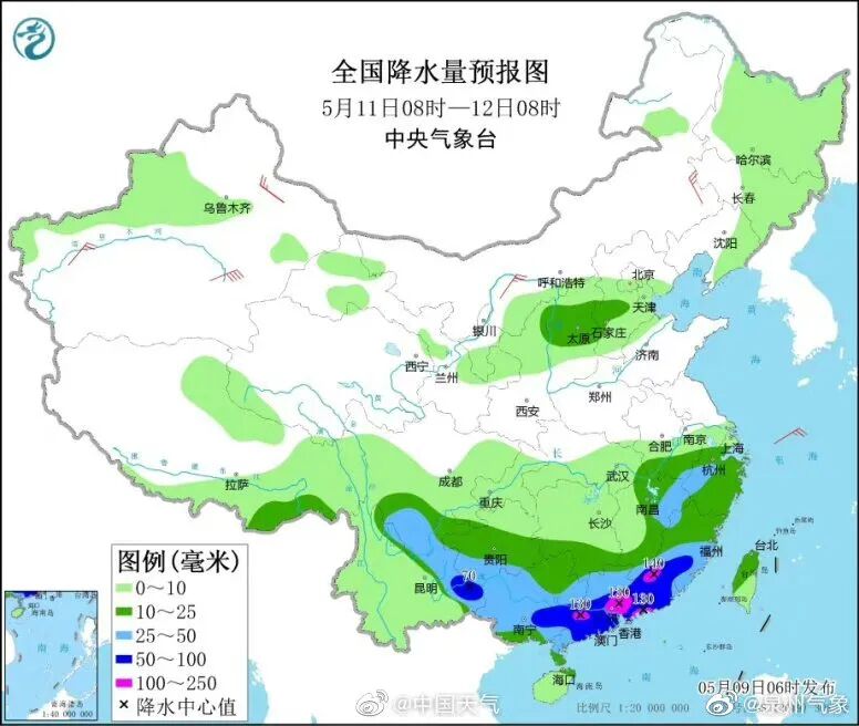 预计本周天气仍以阴雨天气为主需要关注的是注意!今年入汛以来最强降雨要来了!5月9日开始,南方将遭遇新一轮强降水过程,预计未来五天,多地将出现大规模激烈降雨,并伴有短时强降水、雷暴大风等强对流天气,江南南部、华南等地将经历今年以来最强降雨过程,广东、广西局地日降雨量可能打破历史极值。