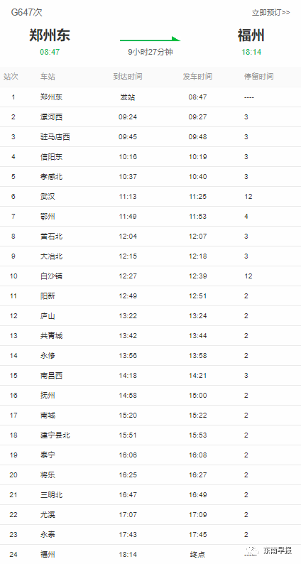 G647列车时刻表