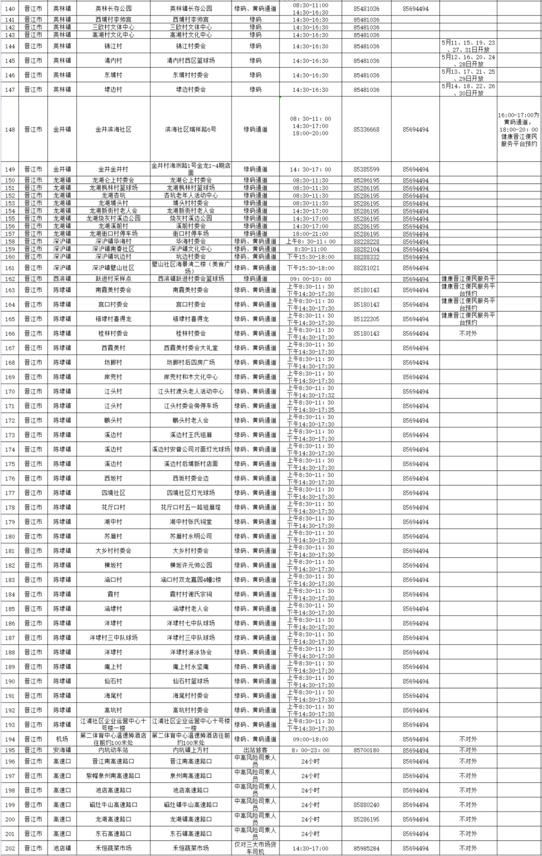 1.202个!晋江最新核酸采样点名单!为进一步满足广大群众的核酸检测需求,晋江市5月12日起设置202个便民采样点,请有检测需求的居民做好个人防护,就近采样。具体采样点名单(点击查看高清图片