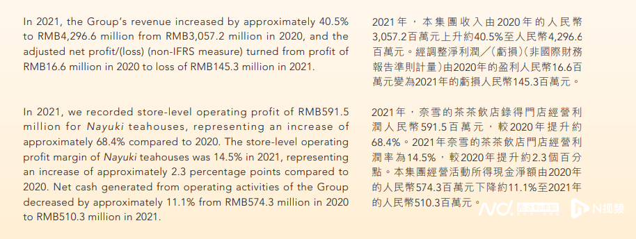 奈雪的茶官网截图公开资料显示,2021年2月11日,奈雪的茶正式向港交所递交上市A1表,启动上市流程;2021年6月30日,其正式在港交所挂牌上市。记者发现,在上市接近1年时间里,奈雪的茶多次被曝出食品安全问题。根据此前*****鉴定评测实验室对近1年来茶饮品牌抽检不合格的数据统计,奈雪的茶被点名3次,仅次于蜜雪冰城(5次),成为上质量黑榜次数较多的茶饮品牌企业之一。如:2021年8月2日,“奈雪的茶”北京西单大悦城店及长安商场店被曝存在蟑螂乱爬、水果腐烂、抹布不洗、标签不实等问题;同日,北京市市场监管部门对“奈雪的茶”涉事门店开展现场检查,针对其违法违规行为,进行立案查处,拟对2家涉事门店均给予顶格罚款10万元,对2家门店店长分别罚款25万元和罚款28万元。2021年11月3日,*****记者从上海市市场监督管理局获悉,上海奈雪餐饮管理有限公司南京西路分公司因生产经营标注虚假生产日期、保质期或者超过保质期的食品、食品添加剂,被上海市静安区市场监督管理局罚款5万元。而在多次被曝食品安全问题的另一面,则是品牌门店的迅速扩张。2022年3月29日,奈雪的茶发布上市后首份年报。财报提及,截至2021年12月31日,奈雪的茶在80个城市共开出817家门店,较2020年新增了门店数326家。公司称,2022年奈雪的茶预计将新开350家茶饮店,“在现有一线、新一线和重点二线城市加大门店密度,提高品牌势能”。财报显示,奈雪的茶茶饮店提供的产品销售产生大部分收益,报告期和2020年,奈雪的茶分别贡献94.7%及93.9%的总收益,剩余的小部分来自集团另一子品牌台盖经营的茶饮店。数据显示,2021年奈雪的茶总营收42.96亿元人民币,同比增长40.5%,经调整净利润亏损1.45亿元。相比较之下,2020年,其营收为30.57亿元,经调整盈利1664.3万元。
