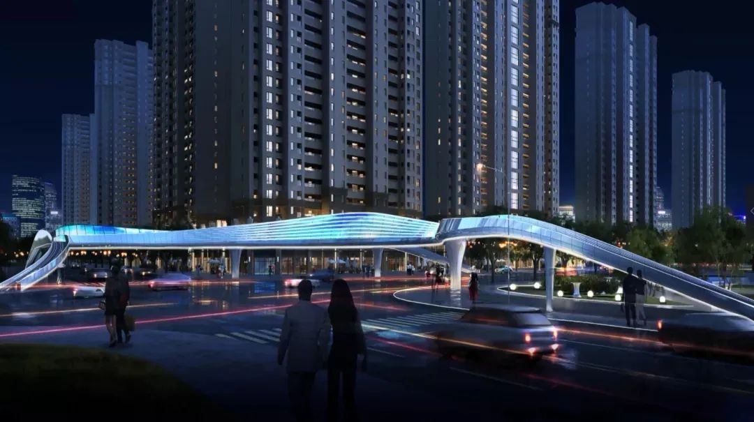 据介绍,该人行天桥总长349米,面积约4099平方米,主桥与坡道桥采用整体连续结构,最大单跨跨度37米,包括主桥、坡道桥、梯道、螺旋梯,上部结构形式为钢结构。项目总投资约2142万元,其中工程建安投资约1688万元。