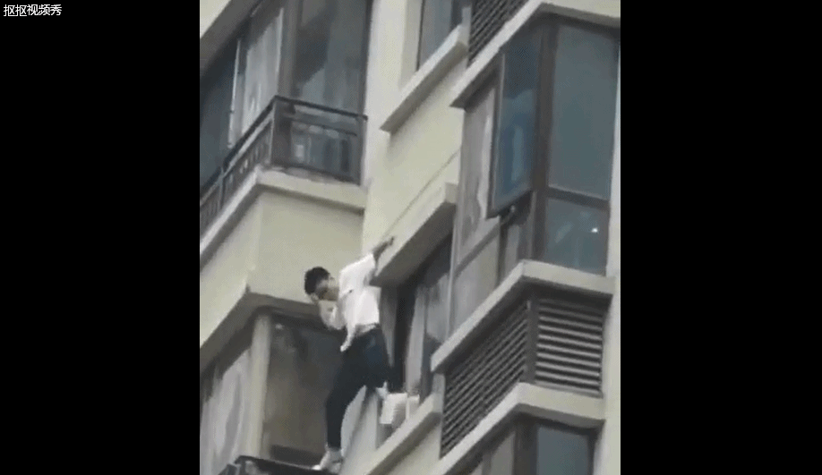 5月27日下午4时许贵州贵阳一男子徒手从一栋37层的高楼上爬下攀爬过程中男子