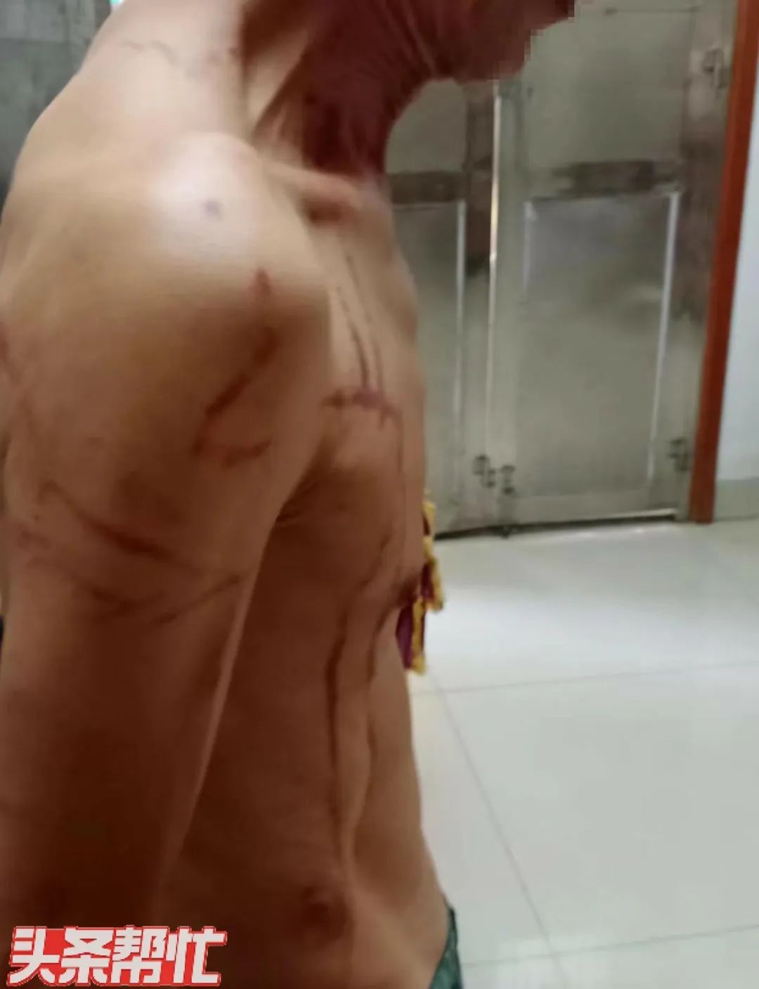 许先生称,妻子用戴着银手镯的那只手握成拳头打自己,“打了我的胸,头,还有肩膀。”在许先生堂兄弟提供的照片中,记者注意到,许先生的背部、脖子、腿部都有一些红色印痕,“都是被她(余女士)打的。我没去医院,之后只去药店买了一些药。”