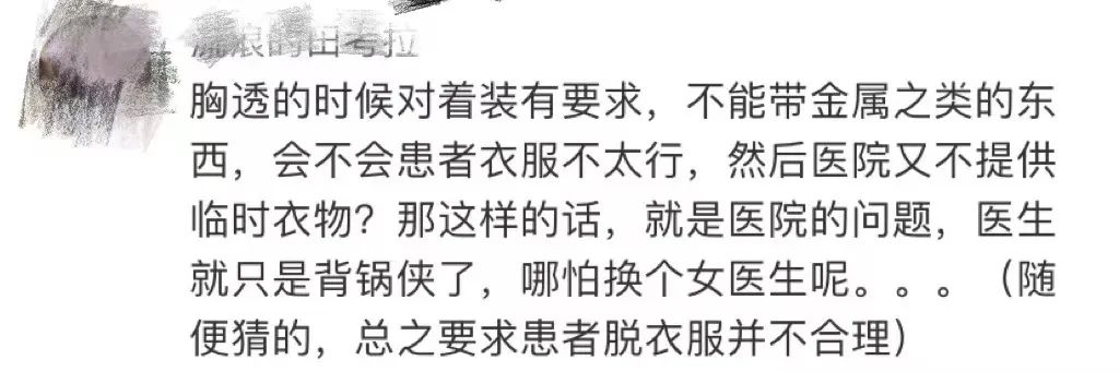 河北张家口的王女士在怀来县医院入职体检时就做了这项检查然而过程中医生以片子看不清为由要求她脱光上衣?!