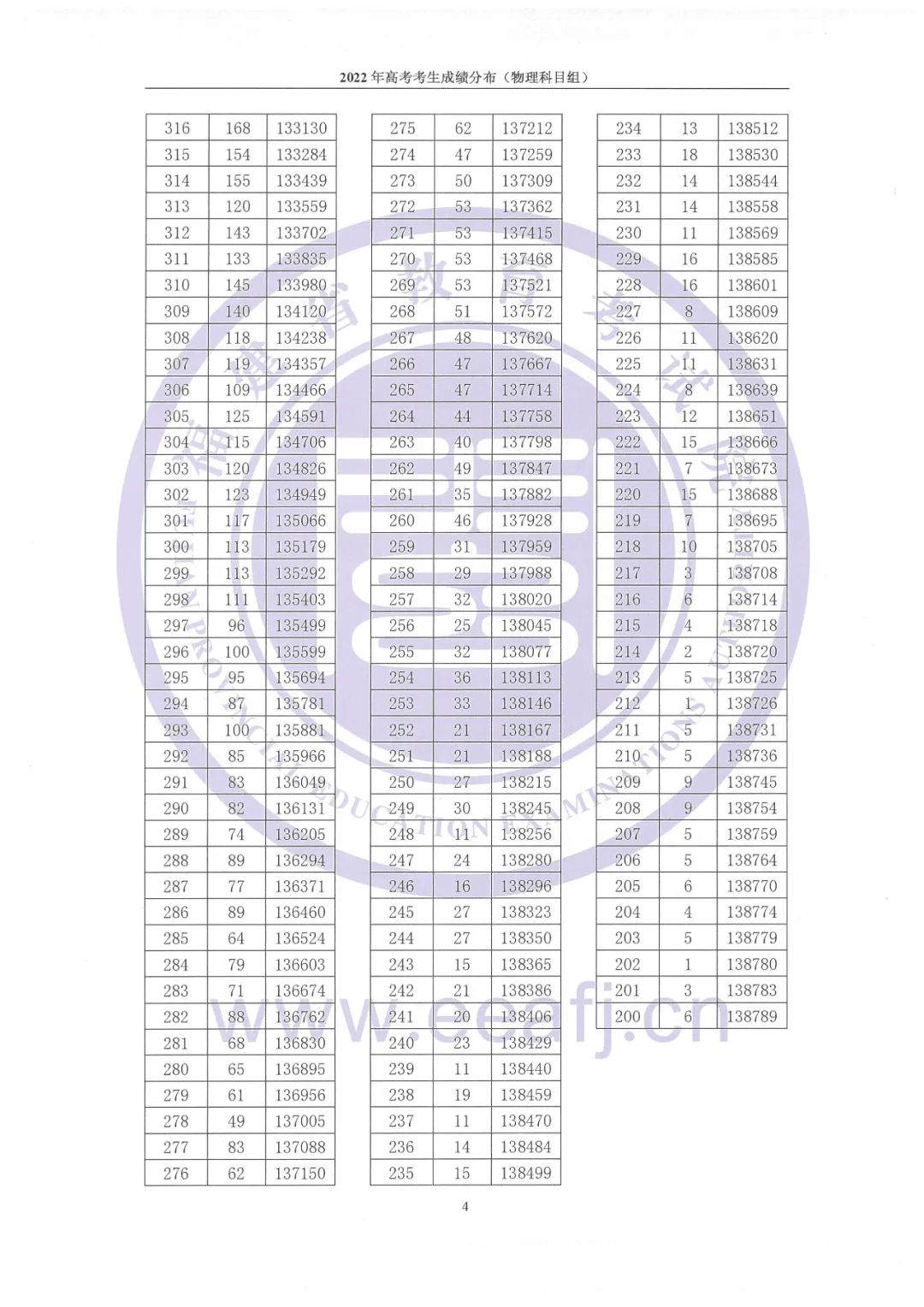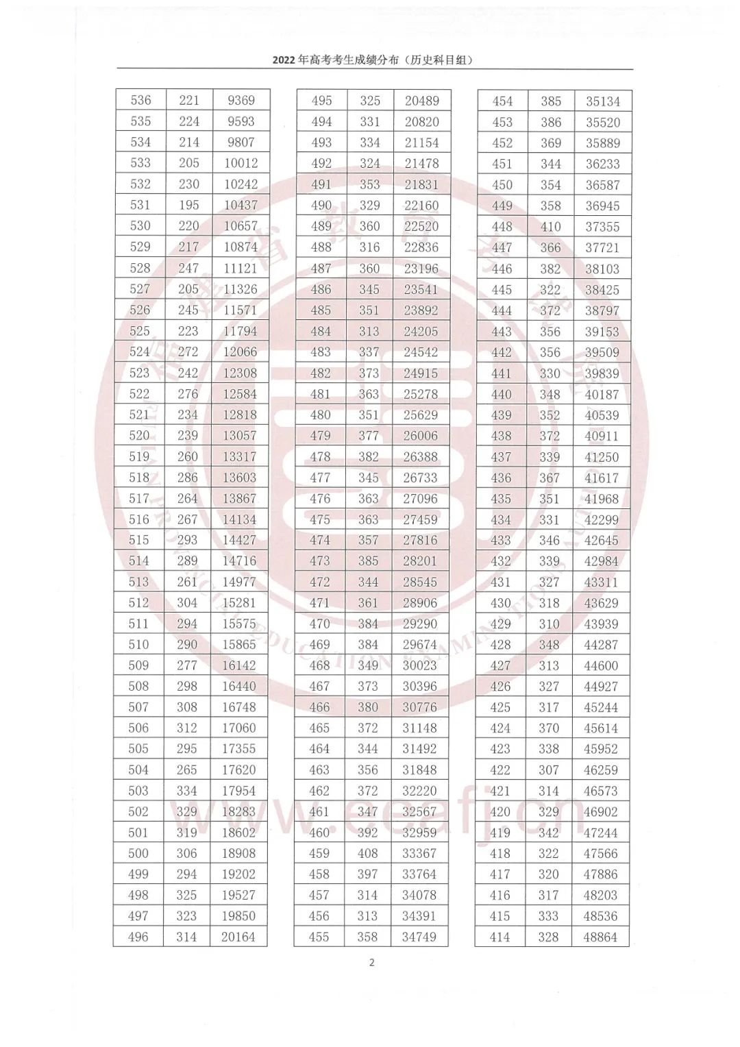 2022年福建省高考考生成绩分布物理科目组+历史科目组