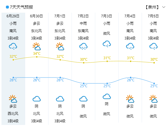 泉州未来7天天气预报本周泉州依旧高温占领主要舞台!周日之前最高温基本在33℃不过本周四将开启新的一波降雨模式