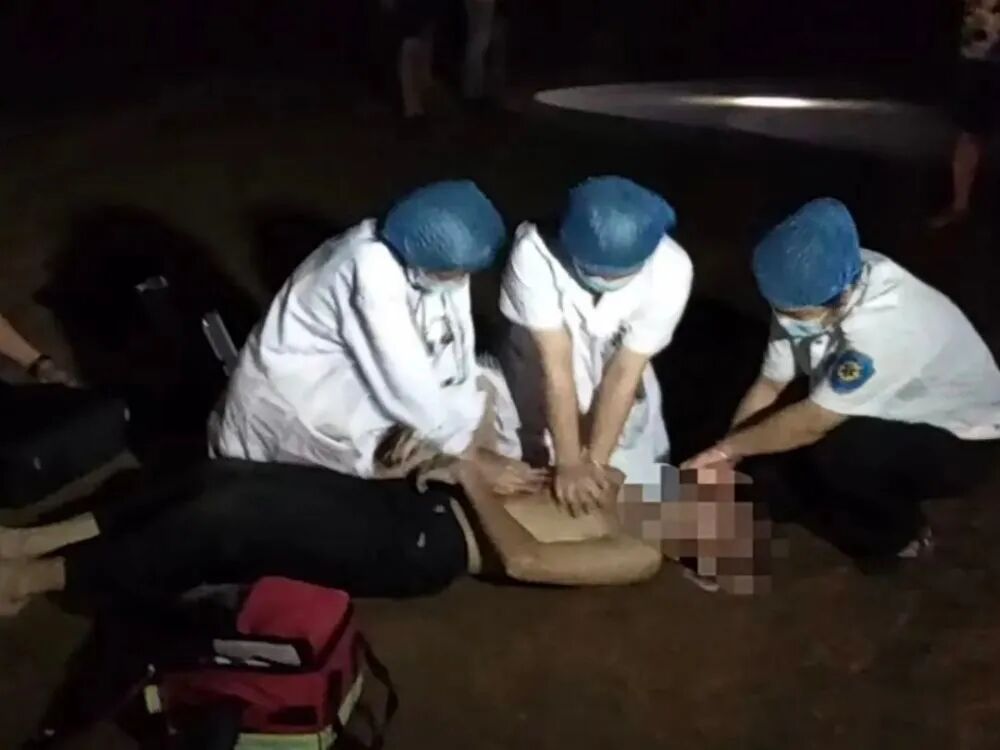 医务人员对溺水者进行紧急救助(网友视频截图)