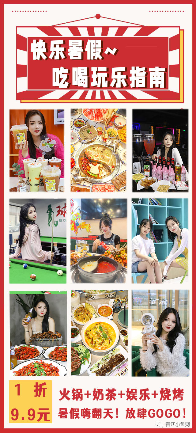 ▼戳重点:文末有9.9元抢原价14元放牛斑大杯波霸奶绿+9.9元抢原价28元盲盒麻辣烫套餐+39.9元抢门市价128元晋江单人自助火锅+78元抢原价166元烤鱼套餐等福利! 18家吃喝玩乐优惠清单请收好~01 9.9元抢原价14元放牛斑大杯波霸奶绿  放牛斑 地址:晋江市世纪大道梅岭万达金街J003铺位(3号门)电话:0595-85081102营业时间:10:00-23:0002 39.9元抢门市价128元晋江单人自助串串火锅  禾里港小郡肝火锅串串 地址:晋江市时代广场金溪路11号(F1酒吧旁边)电话:15806227555营业时间:早上11:00-凌晨5:0003 9.9元抢原价72元晋江台球俱乐部套餐  华狮台球俱乐部 地址:晋江市陈埭镇花厅口村和谐路6号(原农贸市场)电话:13045955061营业时间:早上10:00-凌晨4:0004 99元抢原价330元8斤小龙虾   资溪龙虾烧烤 地址:晋江市青阳街道湖光路与江滨路交口东30米路南(金玛国际酒店对面)电话:18859915102营业时间:下午16:00-凌晨4:0005 19.9元抢原价128元纯色美甲  瑜美人美肌工坊晋江店 地址:晋江市梅岭街道双龙路世贸曼哈顿商业街 E5-6栋209(纯正堂楼下)电话:0595-85968585营业时间:早上11:00-晚上20:0006 88元抢原价298元染或烫+洗吹造型  M-Hair喵喵造型 地址:晋江市陈埭镇新城控股集团吾悦广场一号门二楼(星巴克楼上)电话:18359500822营业时间:上午10:00-晚上21:0007 9.9元抢原价135元晋江酒水套餐  麦田小酒馆 地址:晋江市阳光时代广场B栋3楼电话:19526009448营业时间:晚上19:00-凌晨4:0008 99元抢原价235元贤合庄火锅套餐  贤合庄卤味火锅 地址:晋江市万达广场1号门3楼(音乐之声KTV隔壁)电话:0595-85207333营业时间:早上10:30-晚上22:00 09 19.9元抢原价68元洗+剪+吹造型  M-Hair喵喵造型 地址:晋江市陈埭镇新城控股集团吾悦广场一号门二楼(星巴克楼上)电话:18359500822营业时间:上午10:00-晚上21:0010 199元抢原价378元岩越越南料理  岩越越南料理 地址:福建省泉州市晋江市梅岭万达广场三楼3021-3022A电话:0595-88522522营业时间:早上10:00-22:0011 99元抢原价322元晋江酒水套餐  麦田小酒馆 地址:晋江市阳光时代广场B栋3楼电话:19526009448营业时间:晚上19:00-凌晨4:0012 99元抢原价1000元晋江乐园天地5次卡  乐探机器人 地址:晋江市和平南路与文渊路交叉路口南侧(SM安泰世界城A区11#111-112)电话:15906092385营业时间:周一休息; 周二:下午14:00-下午18:00; 周三、周四:上午10:00-下午18:00 或下午14:00-晚上20:30; 周五:下午14:00-晚上20:30; 周六:早上8:30-晚上21:30; 周日:早上8:30-晚上21:00 13 39.9元抢原价158元2人烧烤套餐  老男孩烤吧(晋江机场店) 地址:晋江天骏壹品二期6栋43号店(厦航酒店大门正对面)电话:15960744081营业时间:下午18:00-凌晨2:0014 9.9元抢原价28元盲盒麻辣烫  123盲盒麻辣烫 地址:晋江市阳光的时代广场青莲南路12-10电话:15396316393营业时间:上午10:00-凌晨4:0015 99元抢原价300元3-4烧烤套餐  老男孩烤吧(晋江机场店) 地址:晋江天骏壹品二期6栋43号店(厦航酒店大门正对面)电话:15960744081营业时间:下午18:00-凌晨2:0016 16.8元抢原价35元盲盒麻辣烫   123盲盒麻辣烫 地址:晋江市阳光的时代广场青莲南路12-10电话:15396316393营业时间:上午10:00-凌晨4:0017 99元抢原价275元潮汕牛肉火锅套餐  闽乐潮汕牛肉火锅 地址:晋江市青阳青华东区77-2号电话:0595-88011719营业时间:早上11:00-凌晨2:3018 78元抢原价166元江湖渔道烤鱼套餐   江湖渔道纸包烤鱼晋江店 地址:晋江阳光时代广场大地影院旁(金溪路与和平路交叉口)电话:15859489826营业时间:早上10:00-中午14:00下午16:30-凌晨2:0019 139元抢原价240元阿辉潮汕牛肉火锅自助  阿辉潮汕牛肉自助火锅 地址:晋江青阳金溪路8号电话:15906094918营业时间:下午16:00-凌晨2:0020 225元抢原价268元荣誉国际酒店自助餐券  晋江荣誉国际酒店 地址:晋江市梅岭街道世纪大道移动大厦荣誉国际酒店28楼电话:0595-68205666(用餐请提前预订餐位)[align=start] 营业时间:午餐11:30-14:00;晚餐17:30—21:30欢迎在留言区讨论PS:关注我们获取更多优惠信息哟-END-