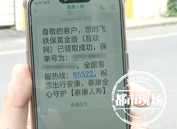 从蒋先生收到的短信可以确定,这是一份来自“泰康人寿”保险公司的飞铁保黄金版保险 。那么,蒋先生喝“东鹏特饮”开盖扫码中奖,怎么就“被投保”了保险呢?