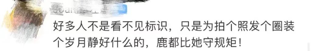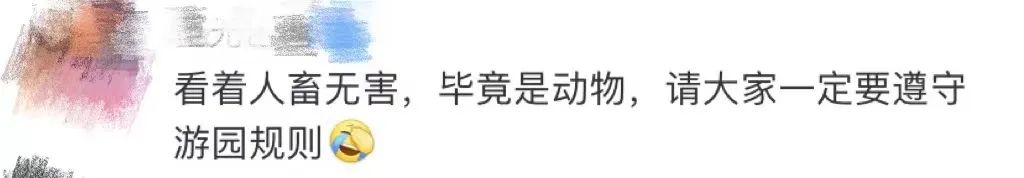 工作人员还表示园区内有很多禁止私自携带食物投喂动物的标志,这和个人素质有关。