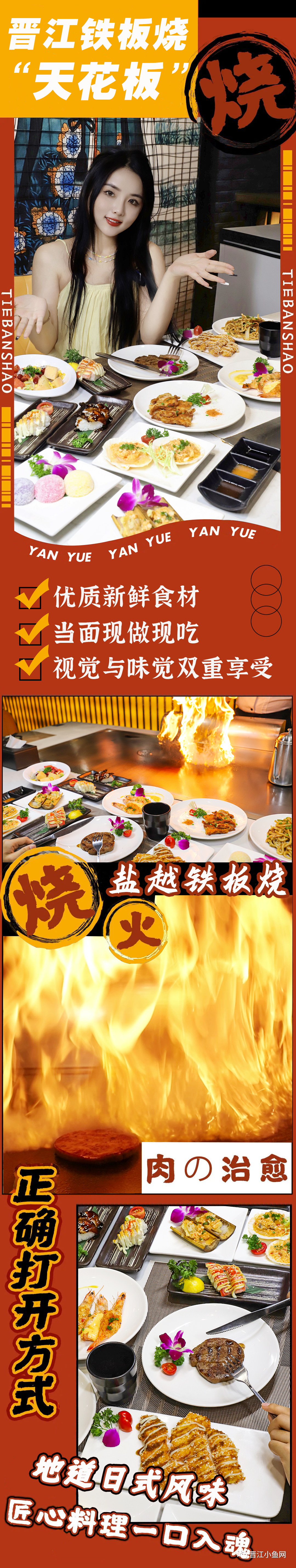 盐越铁板烧 地址:晋江市宝龙广场三楼盐越铁板烧电话:0595-88010269营业时间:10:00-21:30