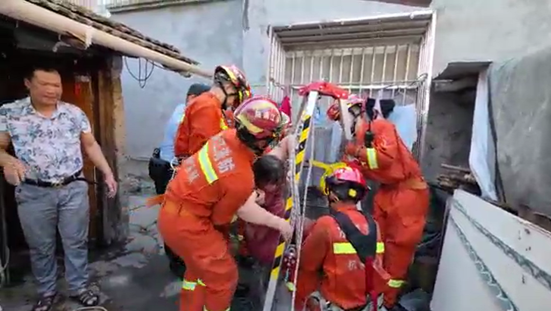 救援人员成功将被困女子救出,交予现场医护人员送往医院做进一步检查。