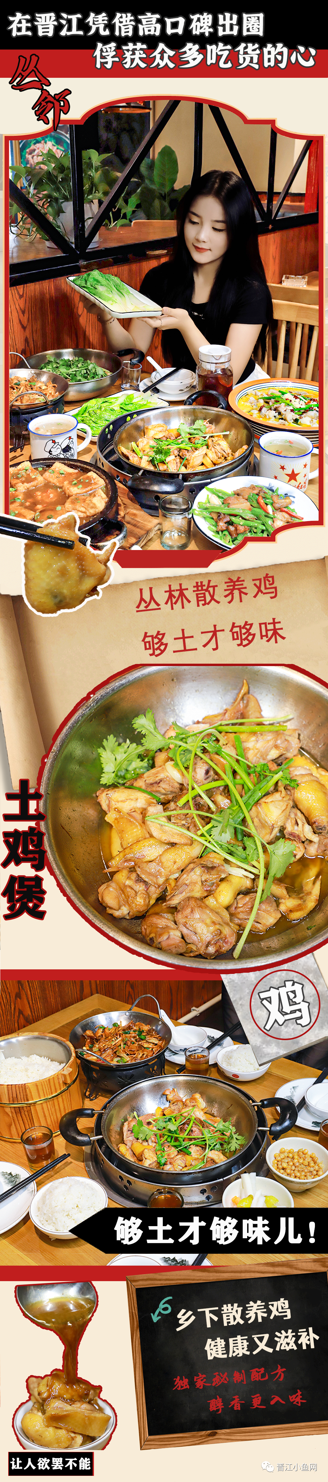 环境宽敞明亮又不失格调在这里吃饭都会放松,舒舒服服的吃完一顿美食 丛邻土鸡煲  简约的木色桌椅优雅舒适暖黄的灯光给人一种家的温馨幸福感  精致的雅间适合家人聚会,和朋友谈天说地大口吃肉,真是畅快淋漓~ 趁着这波福利,还不赶快约起?   __ -END-晋江小鱼网 · 粉丝专属福利 8月日-8月日向 晋江小鱼网 后台发送口令 土鸡煲 即刻抢 『丛邻土鸡煲』福利1原价111元双人套餐特价49.9元;招牌土鸡煲(小锅)79元;凉茶(1扎)19元; 米饭餐具(2份)8元; 小菜(2份)5元;(☟戳下方小程序快速购买☟)[img]https://mmbiz.qpic.cn/mmbiz_png/w4ESxt9RSC1H5LjWWjiapWpMoJAiaQG3ibo2RB8xysj4x9vsSCURqicF0KiaROA3L481KtDzleL6zvCA3e5WjN0CrKA/640?wx_fmt=png&wxfrom=5&wx_lazy=1&wx_co=1[/img]抢购日期:2022年8月27日-9月30日使用日期:2022年8月27日-11月30日福利2 原价151元4人 套餐特价 79元; 招牌土鸡煲(小锅)79元;永安笋干炒肉32元; 凉茶(1扎)19元; 小菜(2份)5元; 米饭餐具(4份)16元; (☟戳下方小程序快速购买☟)[img]https://mmbiz.qpic.cn/mmbiz_png/w4ESxt9RSC1H5LjWWjiapWpMoJAiaQG3ibotiaVZgKNw36hOGx5E8Dh5lfX8FzEhprhEdsySfiav90lc5E2cNZiag2EA/640?wx_fmt=png&wxfrom=5&wx_lazy=1&wx_co=1[/img]抢购日期:2022年8月27日-9月30日使用日期:2022年8月27日-11月30日[img]https://mmbiz.qpic.cn/mmbiz_jpg/w4ESxt9RSC0FK5EDnPrOjKkfLcib429jBcnTGibCV17BialpblcsXP8Ubb5ia7Vzkv3W5KibnyDD8XsCjYGs5mQX16A/640?wx_fmt=jpeg&wxfrom=5&wx_lazy=1&wx_co=1[/img] 活动说明: 1、请在点单前主动告知店员使用本福利,点单后出示无效。2、此优惠不能与其他优惠同时使用,如需发票,则不能使用福利。3、活动有效期2022.8.27-2022.9.30,过期无效。4、活动详情可直接咨询商家,现场如有问题请联系店长。[img]https://mmbiz.qpic.cn/mmbiz_png/w4ESxt9RSC3KN9m4eZIjDJdIb0RPo7paMzw2ry7DLI3EbA8bhdvZXGSLp1gOy2D0hg8EYQc2wXrmBbFqeEZ29A/640?wx_fmt=png&wxfrom=5&wx_lazy=1&wx_co=1[/img] [img]https://mmbiz.qpic.cn/mmbiz_gif/w4ESxt9RSC3KN9m4eZIjDJdIb0RPo7pamx2ibLfDMLmMOH7VxffcXUZsE7VGL8NlD8HFj4KgQNlsm3FmegcMwUw/640?wx_fmt=gif&wxfrom=5&wx_lazy=1[/img] 丛邻土鸡煲 地址:晋江市安海镇上悦城1号门停车场入口旁电话:0595-85383888营业时间:10:00-14:00 17:00-22:00枞林土鸡煲(安海店) 位置: 福建省泉州市晋江市鸿江中路上悦城1号门停车场入口旁