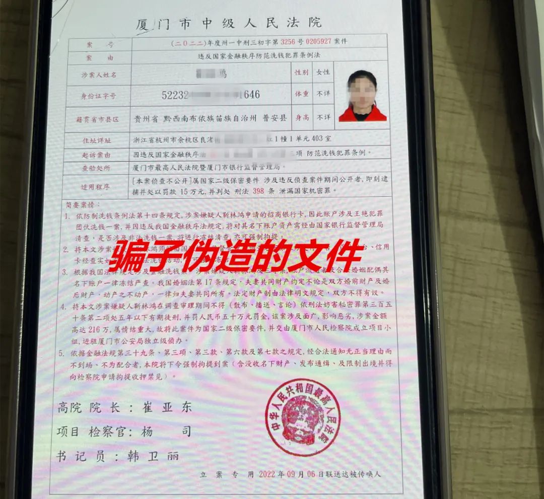 发来了一张伪造的*****和一张检察院通缉令,还身穿警服,手持一台记录仪进行所谓的“调查”。