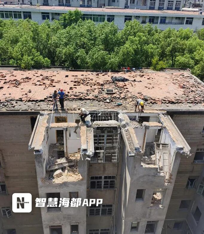 更可怕的是拆除的重物直接从楼顶推下来,时不时就有一声巨响!节假日期间也没有按规定停工,早上6点多就开工,严重扰民。