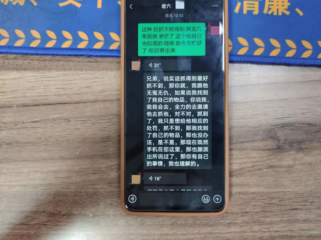 群众俞先生报警称,自己放在某网咖桌子上的苹果12promax手机不见了,怀疑被盗。民警吴辉铎迅速开展调查工作,通过相关监控