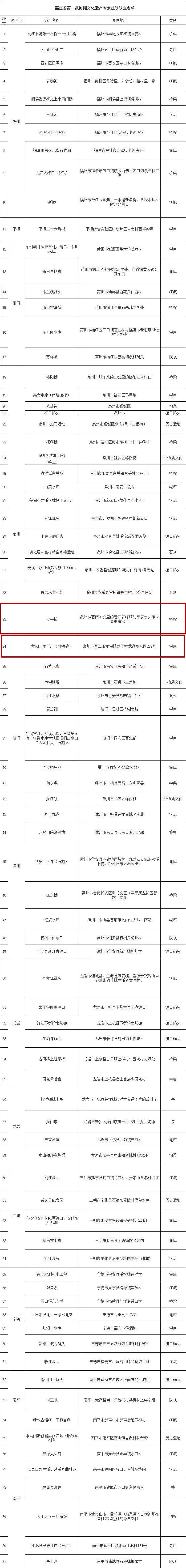 关于福建省第一批河湖文化遗产