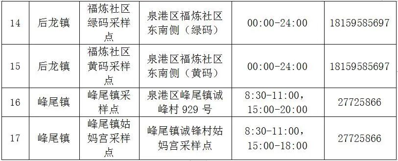 5.事关核酸采样,泉州一地有新变化→10月8日-9日,泉港区各采样点延长采样时间,免费提供核酸检测服务,主要服务辖区重点人群、居民群众,即到即采。泉港区便民核酸采样点名单