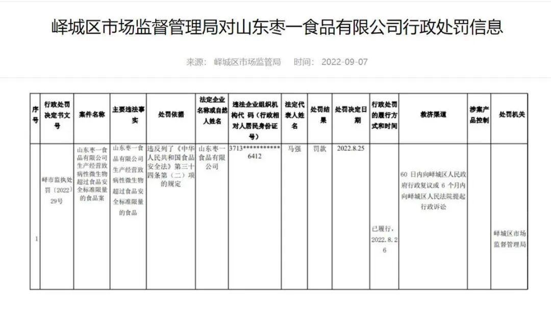 厂家处罚截图(图片来源 网络)这两份说明落款分别为山东枣一食品有限公司和芜湖市硕仁食品销售有限公司。 其中,山东枣一食品有限公司说明,该公司在2021年12月14日和2022年5月21日被当地市场监管部门行政处罚,但当时处罚所抽检的产品是“酸奶燕麦片”和“黑芝麻核桃桑葚粉”,与该主播合作直播带货设计的食品并非同一类产品。 另外,说明还称,2022年该公司生产的藕粉经两次抽检结果均为合格。极目新闻记者尝试联系该公司,电话一直无人接听。 在芜湖市硕仁食品销售有限公司的情况说明中称,与该主播合作售卖的藕粉,由其委托的山东朝旭食品有限公司生产,该公司具备相关资质。 说明称,2022年7月至2022年10月,该公司一共发出三个批次藕粉给消费者,每一批次都可以提供第三方检测机构的检验报告和出厂检验报告。 对于之前售卖的牛排是否为“原切牛排”,主播并未作出回应。