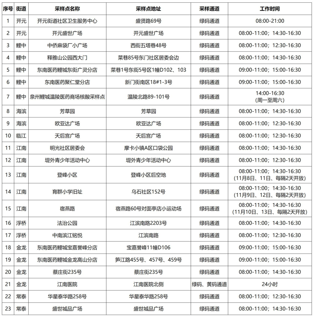 为进一步满足群众核酸检测需求优化核酸采样服务11月8日起鲤城区对核酸采样点进行新一轮调整公布25个核酸采样点名单请有需要的市民游客注意各点位服务时间按需前往检测