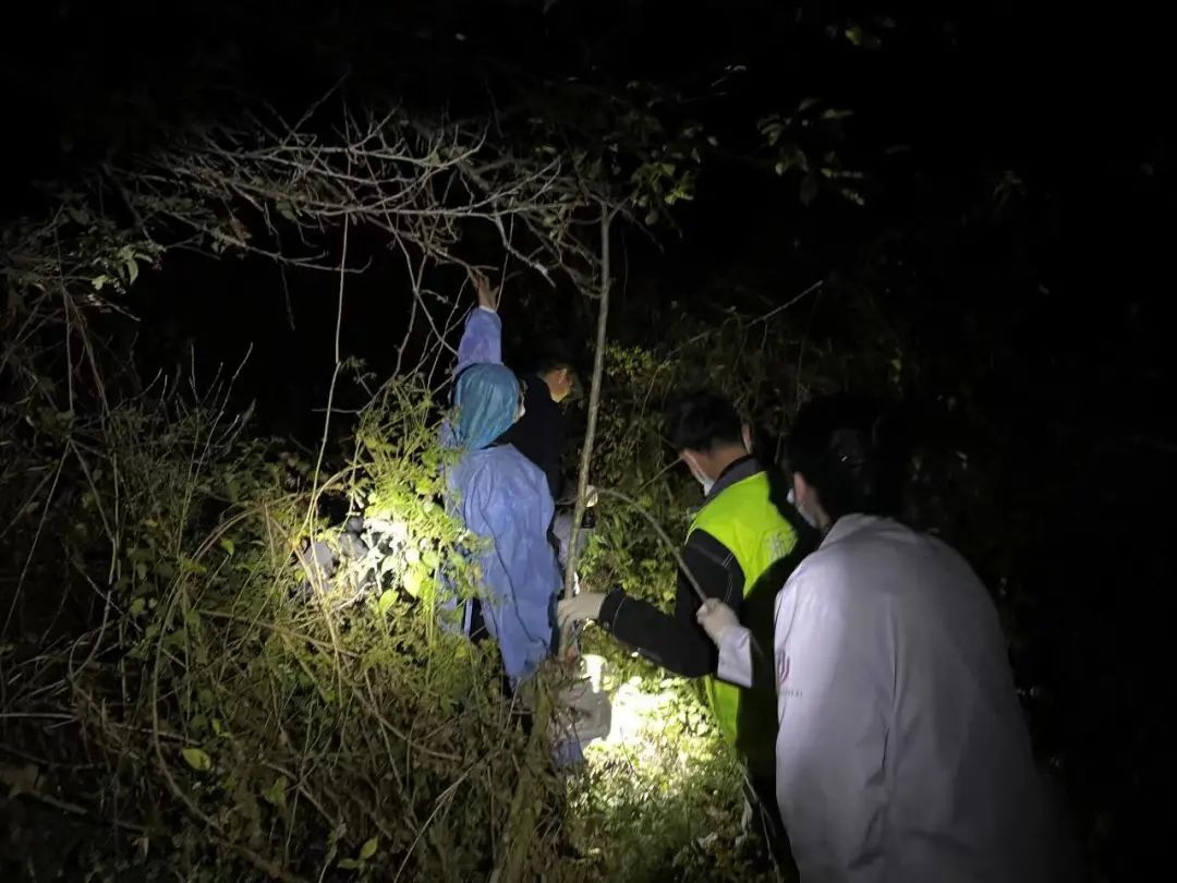 警车一路飞驰,原来1个小时左右车程的急弯山路,仅用了39分钟就到了山脚,但由于被困人员所处位置为陡峭的山坡上,且无任何上山道路,该山林经常有毒蛇、野兽出没,民警一路披荆斩棘,遇山开路,历经一个多小时的攀爬,终于到了被困人员所困树下。