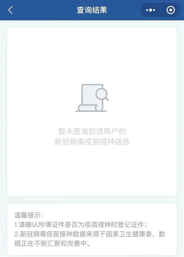 在一款官方小程序上,记者尝试使用杨某连相关信息查询疫苗接种情况,但并未查询到该用户的新冠病毒疫苗接种信息。