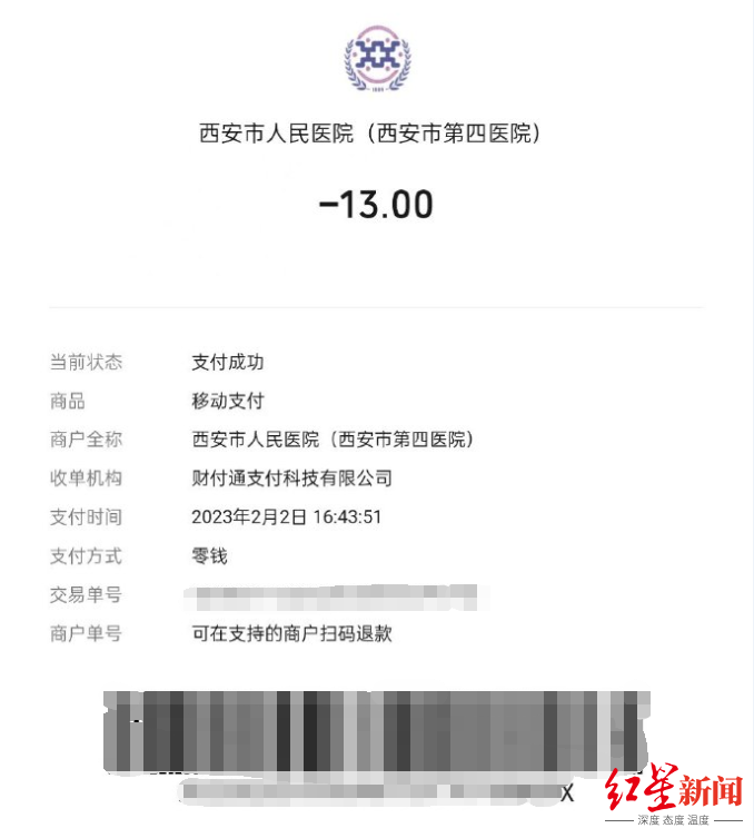 ↑核酸检测收费交易单对此,红星新闻记者联系了西安市卫健委,工作人员表示,根据西安市医疗保障局的相关规定,单独做核酸检测,除核酸检测费用外,医院不应额外收取其他费用。“单纯做核酸检测,在挂号的时候,医院不收挂号费,只收取核酸检测费用。” 来源:红星新闻