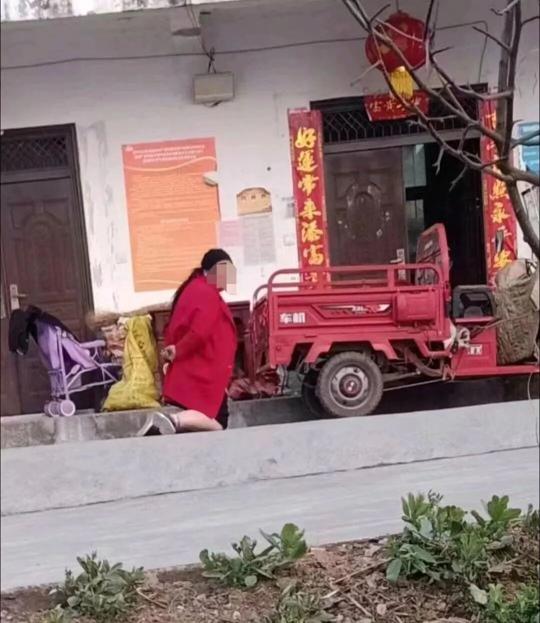 网传图片显示,一名红衣女子双手放在背后,双膝跪地。4日下午,当地一位村民介绍,女子和丈夫都是二婚,育有一女。