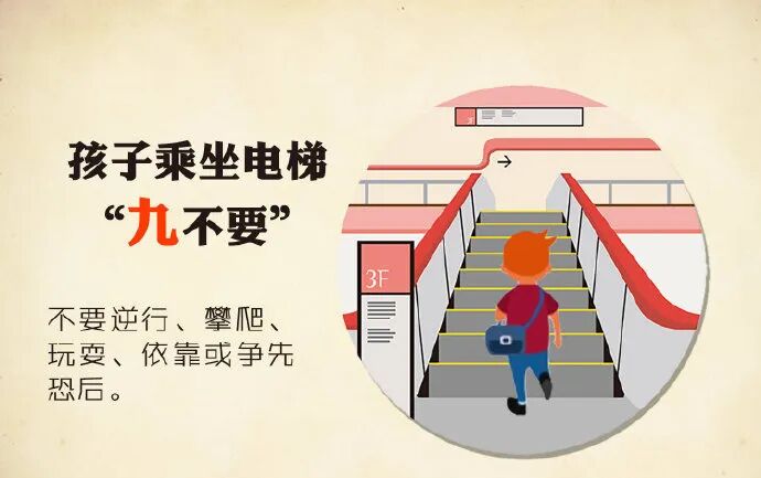 商场的自动扶梯是意外事故频发的地方带孩子乘坐扶梯时一定要照看好小孩子孩子乘坐电梯“九不要”一起来看下