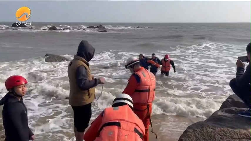 很快,救援人员登上礁石