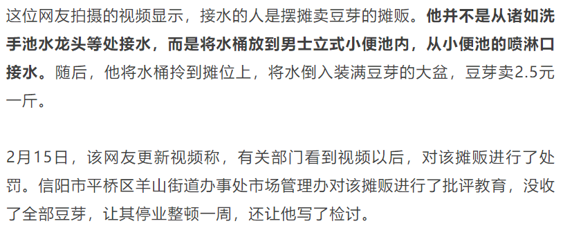 竟从小便池接水泡豆芽!菜场摊贩检讨:“给全市人民群众道歉”