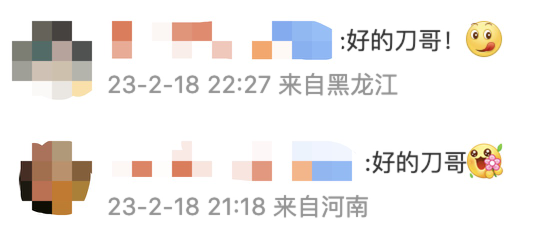 还有网友“沉浸式”回应:“好的刀哥”“都听刀哥的!”