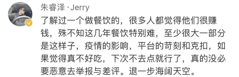 该男子继续吼道:“不好吃你天天来干嘛?我找你删差评是我的事情啊!你乱给啊知道吧!有谁生活容易啊,我200多万欠在那里,有你这样的人?我一家老小全靠这个店,谁生活容易啊!不是这种事情我来找你?”