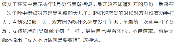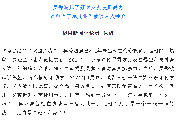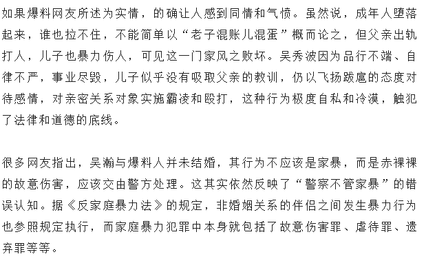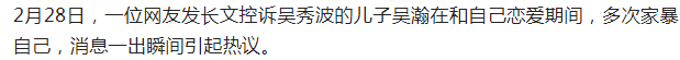 吴秀波儿子被曝家暴多次并出轨