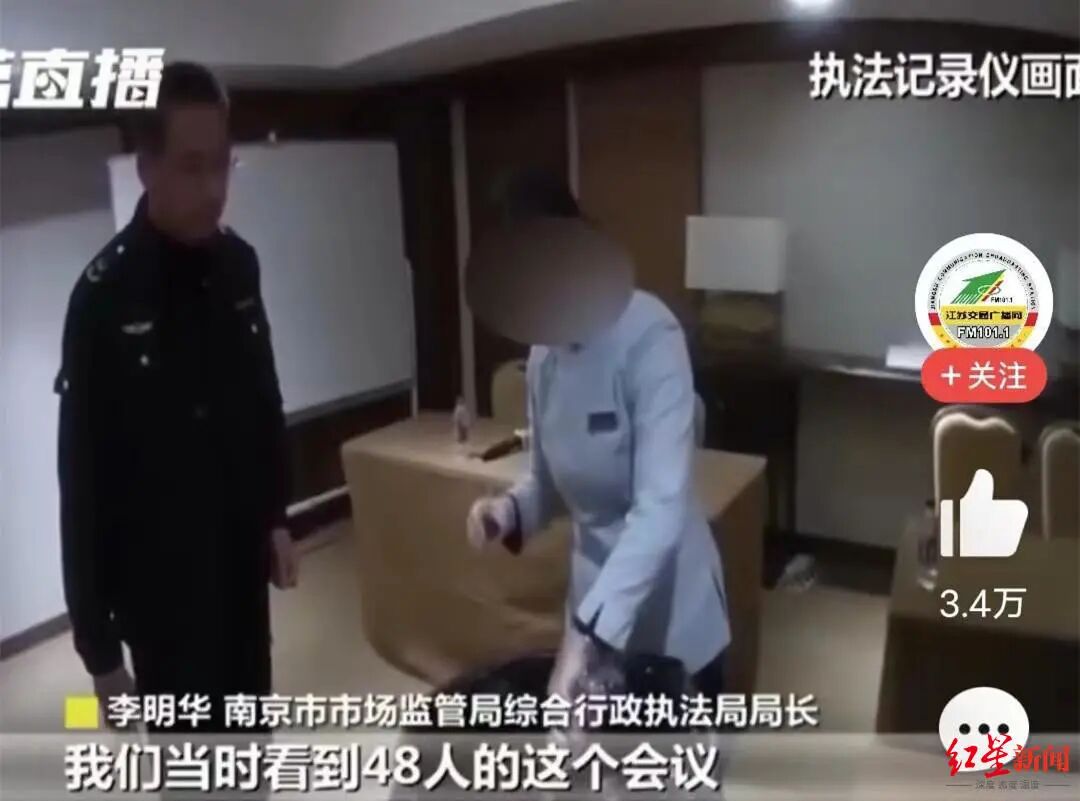 ↑视频截图有网友提出质疑,“市监局执法人员不应该处罚酒店,而应该警告举办会议的企、事业单位。”也有网友认为,执法人员的处罚决定并没有错,建议开会时采用330毫升或更小规格的矿泉水,以此减少浪费。有江苏当地网友指出,酒店是浪费的重灾区,会议或宴会等场合中的水和食物浪费现象非常严重。7日,记者随机咨询了南京市提供承办会议服务的几家酒店,根据酒店工作人员介绍,店内醒目位置未张贴,或摆放反食品浪费标识的现象实际上较为常见,且大多酒店都会提供会议时的矿泉水供应服务。也有酒店介绍,已关注到了瓶装水的浪费现象,目前多在会议室内使用桶装矿泉水,为参会人员提供一次性纸杯。南京市监局: