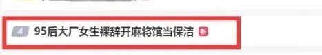 今天下午一则关于#95后大厂女生裸辞开麻将馆当保洁#的话题,登上了微博热搜,而“95后”、“大厂”这样的字眼,跟“裸辞”、“当保洁”出现在同一个语句中所造成的反差,则引来了强势围观。