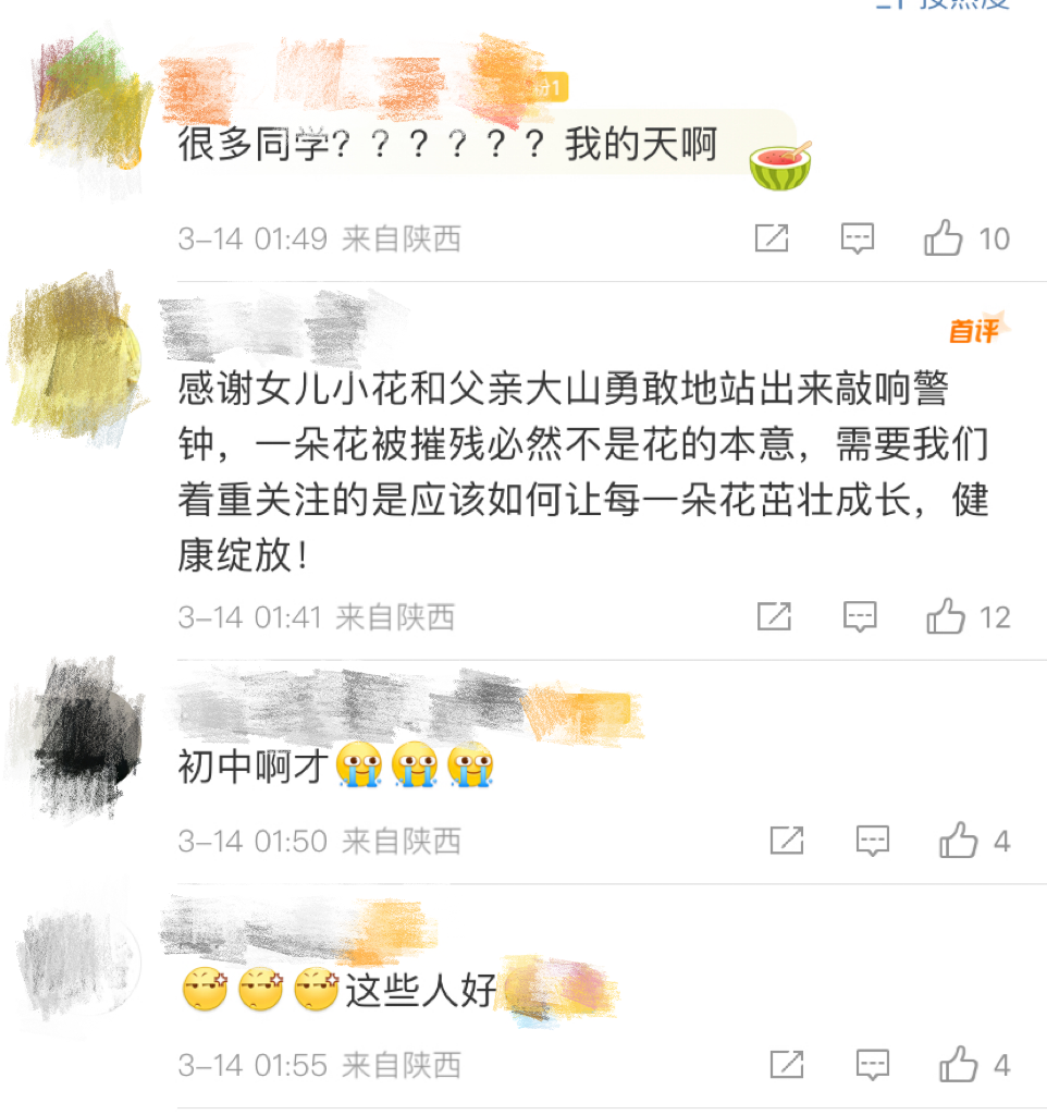 对此,有网友表示:感谢女儿小花和父亲大山勇敢地站出来敲响警钟。