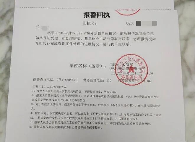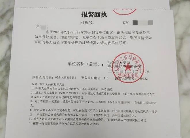 记者从澄海分局澄华派出所获悉,许先生报警一事属实。