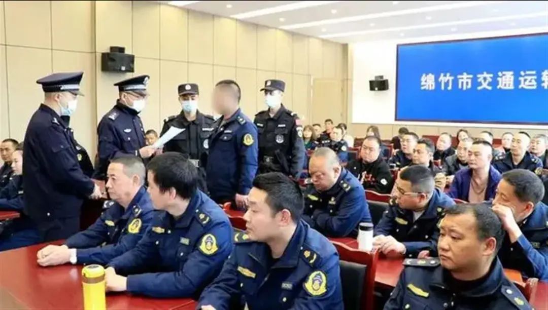据四川省德阳市*****监委官方微信公众号“清廉德阳”3月15日报道,3月7日,绵竹市交通运输局召开敦促主动说清问题警示教育大会。 会上,市*****监委工作人员现场宣布一个处分决定,让参会的60余名路政执法人员神情一紧、现场鸦雀无声。 “韩某某涉嫌受贿犯罪,移送市人民检察院依法审查、提起公诉……”当韩某某听到自己的名字时,脸色一下煞白,站起来时颤颤巍巍,他知道这一刻终将会到来,只是来得这么突然。随后,韩某某被铐上手铐,在大家的震惊中被带离了大会现场。