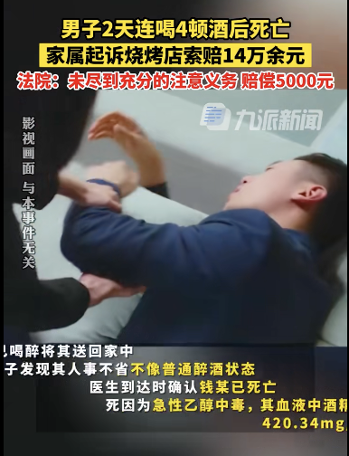 男子2天喝4顿酒后死亡,卖酒商家 ..