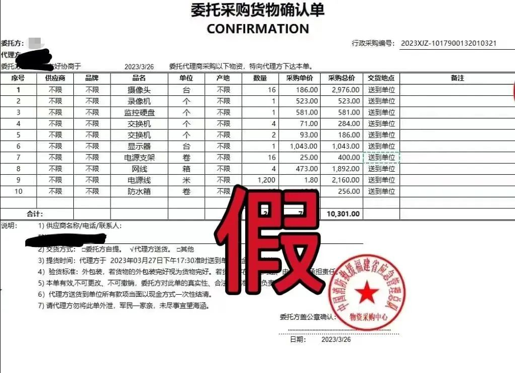 据商家介绍,他接到一通电话,对方自称石狮市消防救援大队的工作人员,因单位要开展演练活动,故向他采购一批物资,并提供采购清单,对方还很“好心”地向老板推送了指定的收货地点,骗取商户的信任。